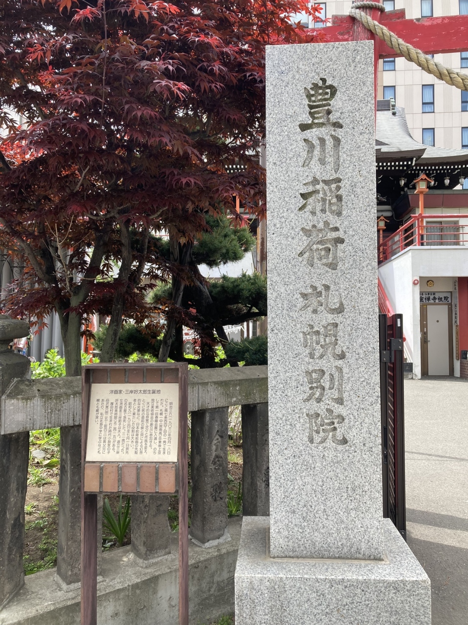 すすきのにある寺院。愛知県豊川市にある日本三大稲荷の一つ「豊川稲荷」の別院で、本寺と同じく神社では無いものの、境内には鳥居がある。過去は「薄野の守護神」と呼ばれたそうで、花街との関わりも深いとされ、薄野の花柳会の無縁仏と水子を哀悼する「薄野娼妓並水子哀悼碑」がある。境内には菩薩像があり、本殿や門柱は建立当時を残すものとのこと。