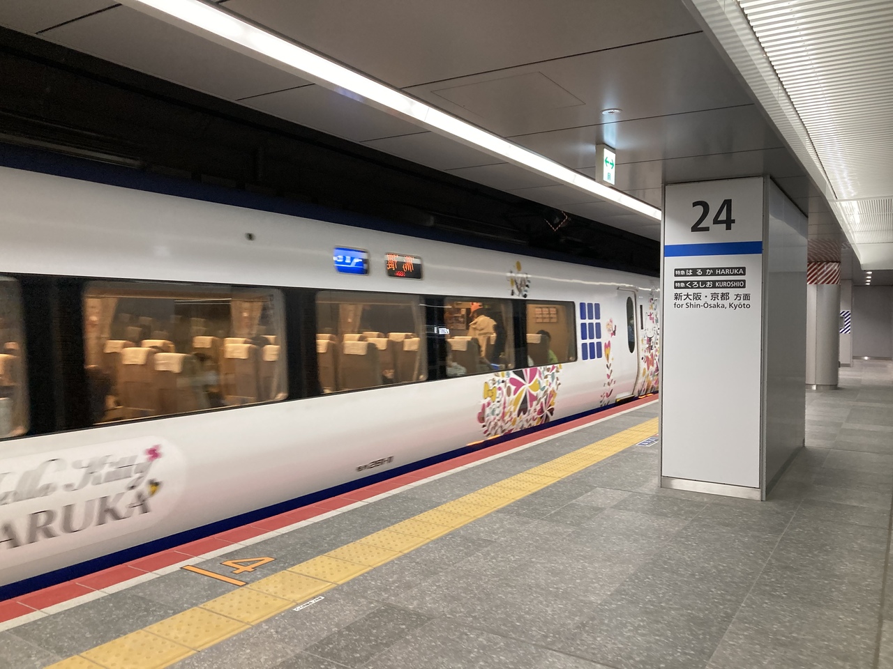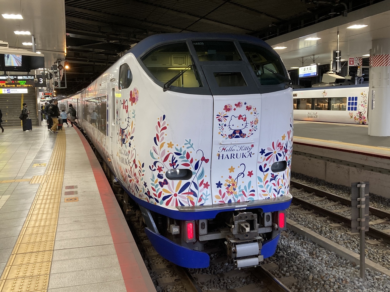 京都方面と関西空港を結ぶアクセス列車としてJR西日本が運行する特急列車。関西空港から大阪(地下駅)まで最短で47分で結んでいます。京都~関西空港間にで1日30往復が運転され、3号が草津発、9・11号が野洲発関西空港行、50・54号が関西空港発野洲行として設定されています。これまでは新大阪から天王寺まで停まらなかったので、キタ(大阪、梅田など)からの乗車は、新大阪まで戻るか、天王寺まで環状線を利用するしかないため、難波から南海ラピートもしくはリムジンバスが便利でしたが、2023年3月にうめきた新駅(大阪駅)開業で、大阪駅にも停まるようになり、利便性が向上。乗り換えなしで大阪、梅田方面に行けるようになりました。ジャパンレールパスが利用できることから、成田エキスプレスと同様、外国人利用者がかなり多く、車両の半数以上が外国人ということも珍しくありません。外国人へのおもてなしの一環で、2019年から車両はハローキティをデザインをラッピングしたものになり、車内もキティデザイン。外国人のお客さんの多くは「キュート」と喜んでいました。ちなみに、J-WESTカード会員限定の「J-WESTチケットレス」であれば、前日と当日のみ、WEBのみの販売ですが、指定席料金が自由席よりも安い650円となり、リムジンバスよりも安くかなりお得です。