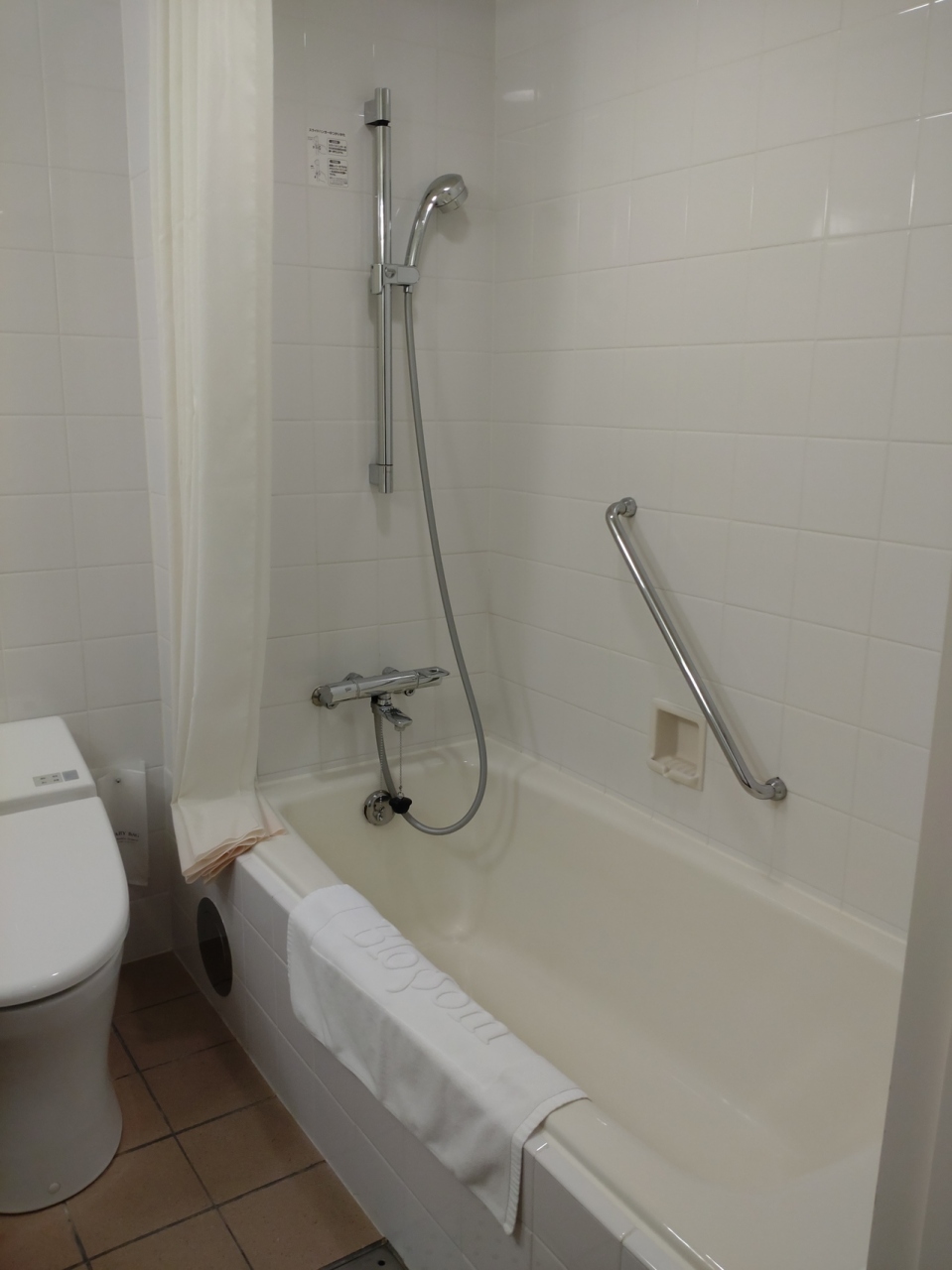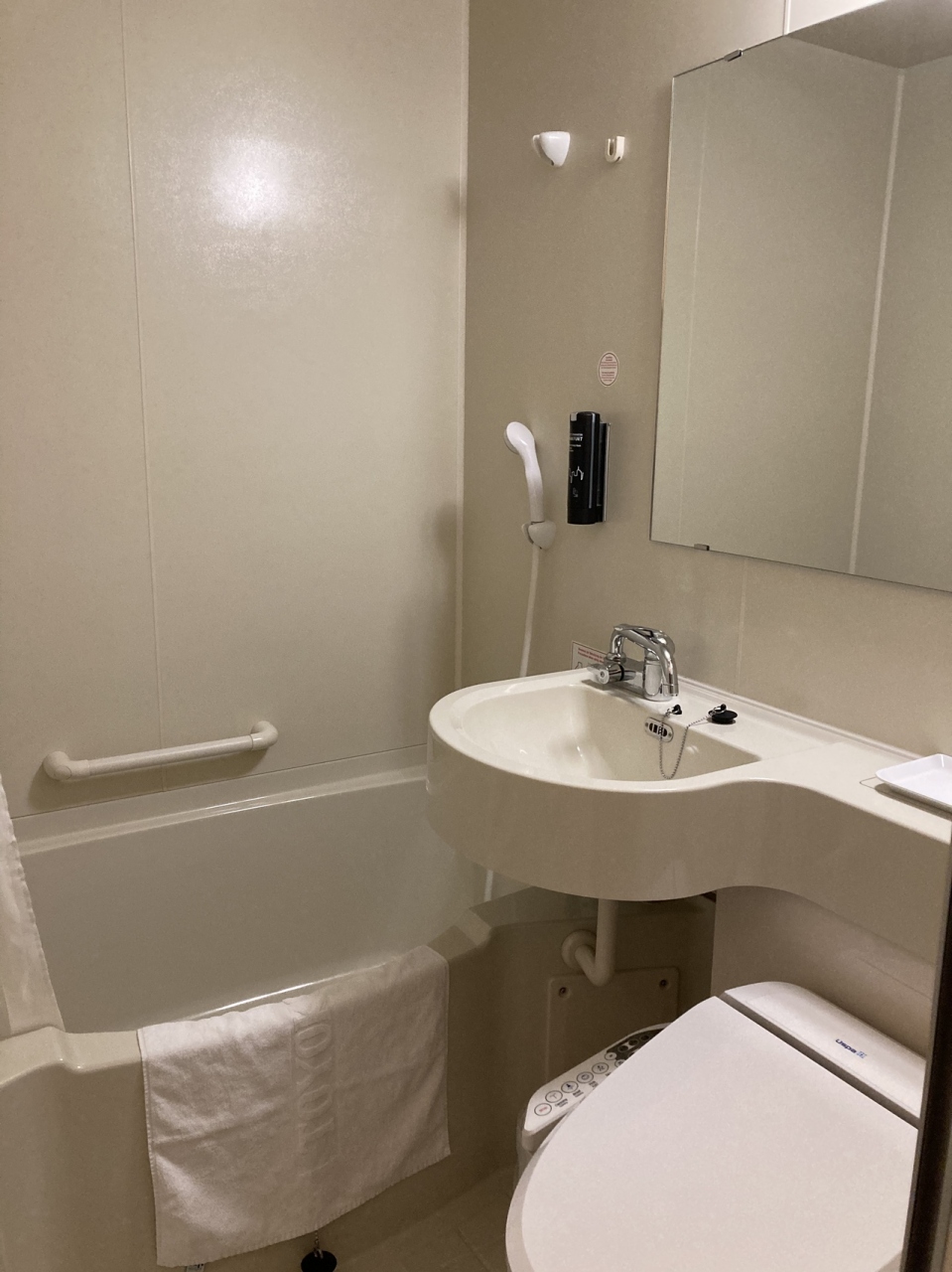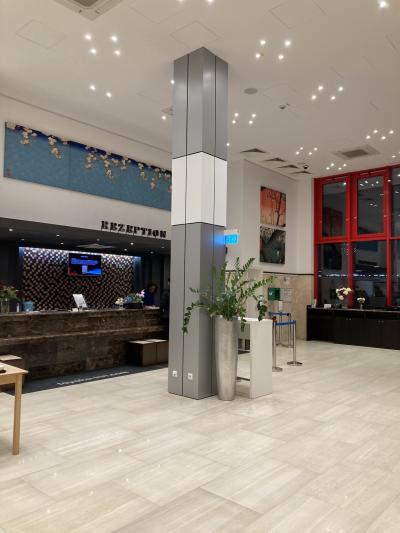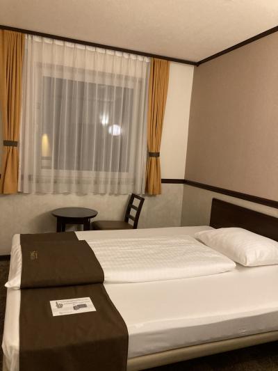 部屋は日本の東横インよりも少し広め。シングルルームを予約しましたが、大柄のドイツ人に合わせてかダブルベッドで、こちらは日本とは異なるもの。机の配置やドライヤー、冷蔵庫、テレビなどは、まるで日本のよう。駅の横ではありますが、とても静かでした。空調も、個々の部屋にエアコンが設置されている日本の東横インと同じ。水回りは完全バリアフリーで、比較的ゆったりとした(日本の東横インよりはかなり広い)バスタブがあり(欧州のホテルは4つ星でもバスタブがないホテルが多い)、しかもドイツ人に合わせてか少し広め。トイレもウォシュレット付きで日本人にも安心。ただ水の勢いがあまり良くないのか、清掃には少し減点(細かくは言いませんが)。欧州のホテルはどこでもそうですが、髭剃りやハサブラシなどはなく、シャンプーとボディソープが共用の固定式のボトルがあるのみ。お湯はしっかりと出ました。