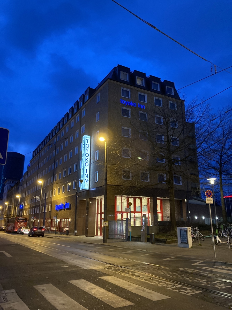 フランクフルト中央駅(Frankfurt Hauptbahnhof(Hbf))から徒歩数分のところにある日本でいうビジネスホテル。星の数で言うと3つ星になるようです。ホテルがひしめくHBFにあるホテルの中でも、ドイツ風の建物の外壁に大きく「TOYOKO INN」とあり、他のドイツ系のホテルとは異なった印象。日本人としては、高級感なイメージはないものの、サービスやクオリティに想像がつくので、安心感があります。