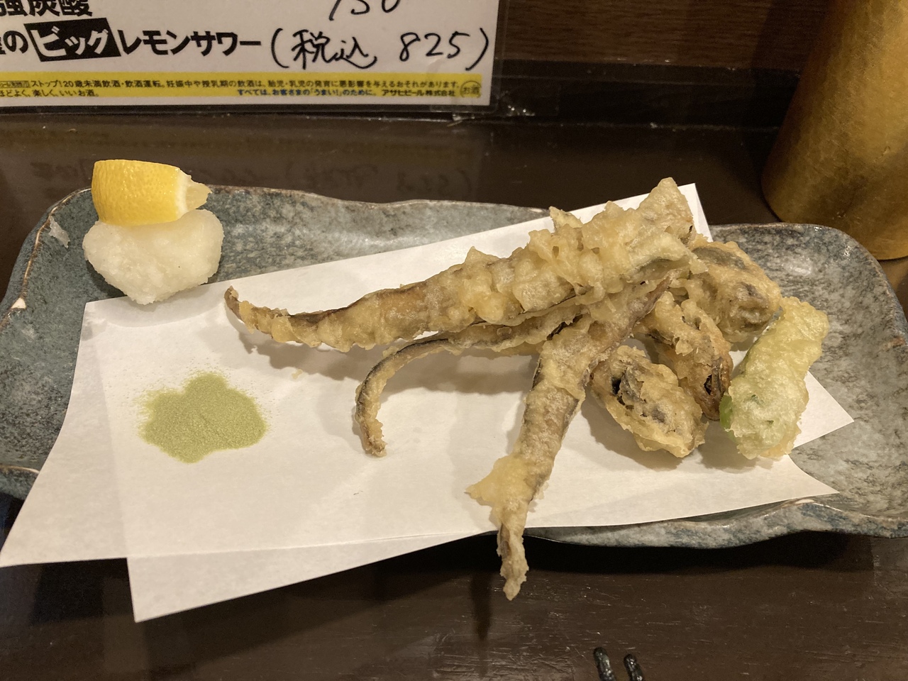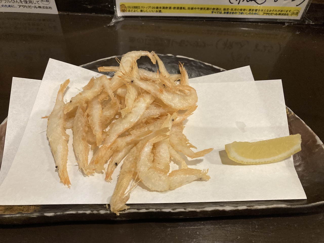 総曲輪にある居酒屋。富山を中心に展開しているお店のようで、ひかくてきリーズナブルに富山名物がいただけます。こんかい、食べたかったのは、ゲンゲの天ぷら、白エビの唐揚げ、ホタルイカ。最初に提供されたのは、ホタルイカ。東京でも食べられますが、この時期(3月)のホタルイカは、産卵期をむかえているのでサイズが大きくトロリとした中身は、鮮度が良くないと味わえない。続いて白エビの唐揚げが提供。富山湾でしか採れない白エビは、まさに「富山湾の宝石」。殻ごと揚げられた白エビは、サクサクした衣の中に濃厚な海老の味が広がります。そして、今回のメインのゲンゲの天ぷら。富山湾に潜む深海魚で、全身がトロトロ下分厚いゼラチンで覆われた白身魚。一夜干しを使っているためか、コラーゲンはあまり感じませんでしてが、美味でした。カウンター席あるので。一人でも気軽に入れました。