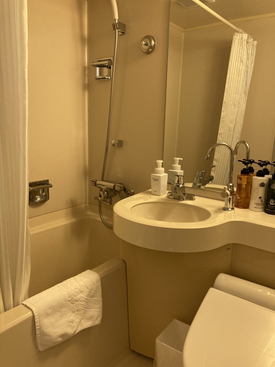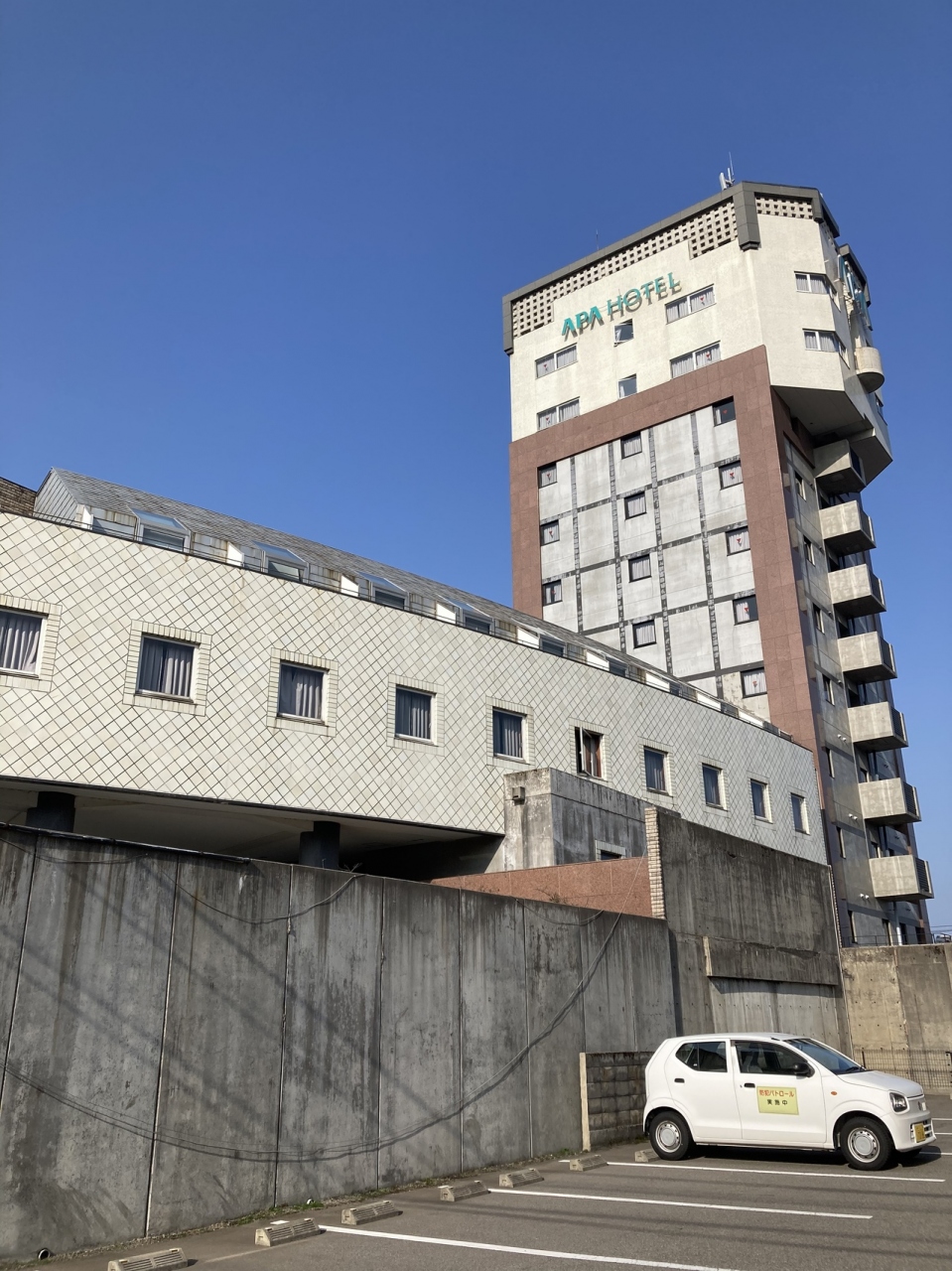 北陸鉄道石川線野町駅から徒歩すぐのところにあるアパホテル。JR金沢駅から少し離れているものの、金沢の繁華街片町や香林坊からは徒歩10分くらい。比較的穴場かもしれません。開業してから20年以上経っていて、建物も最近のアパホテルらしくない重厚なもので、船のように突き出した不思議な建物。フロントは奥の方で狭いものの、広いロビーがあったり、中庭があったりと他にはないものが多数。2022年にリニューアルしたようですが、やはり古さを感じます。一方で、アパ特有の狭さは感じませんでした。寝るだけと割り切れば十分な広さだと思います。サービスレペルは他のアパホテルと同じで安心感あり。アパホテルには珍しく大浴場がありませんが、近隣のアパホテルにはの大浴場を使えるとのこと。なかなか使うのは難しいですが。