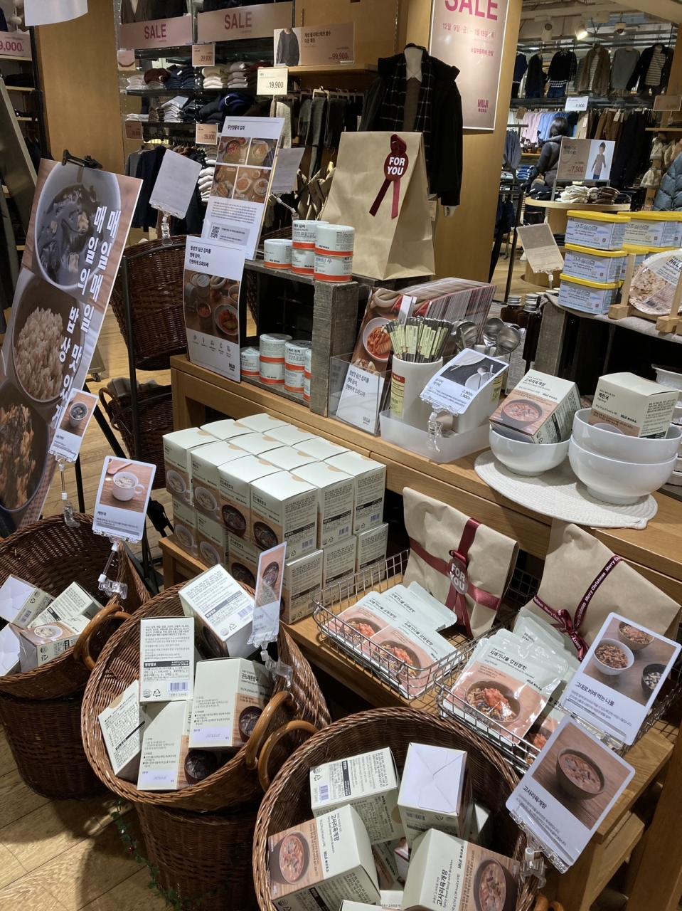 地下一階には、K-POPアーティストのグッズ販売や企画展示を行う「PALETTE」、1階には「KAKAOフレンズストア」やビッグバンが所属する事務所が経営するグッズ店「YG PLACE」があり、日本人客にも人気。このほか、小さい店舗だが、商品が充実した「レゴショップ」や、韓国限定商品も豊富な「無印商品」、お馴染み「UNIQLO」、カレー店などもあります。