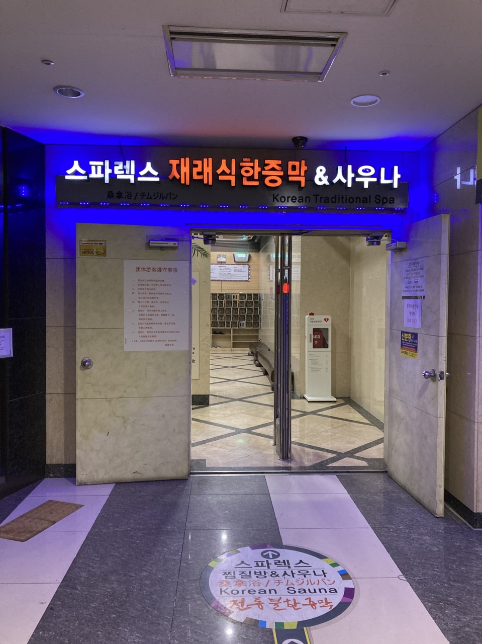 地下鉄2、4、5号線東大門歴史公園駅からすぐのところにあるショッピングビル「東大門グッドモーニングシティ」の地下3階にあるチムジルバン。ボーリング場もある娯楽施設のあるファッションビルながらもやや古さも感じさせるビルの地下はやや冷たさもあるが、エレベーターを降りたすぐのところにお店はあるので安心。入場料はカードも可能ですが、垢すりは現金のみ(飲食はカード利用可能のようです)。チムジルバンのあるのは地下4階で伝統的な韓屋スタイル。古いですがきちんと清掃されており清潔感はあります。大浴場は4ヶ所あり、サウナも2ヶ所。それぞれ温度が異なり、洗い場も多数。ただし、日本のスーパー銭湯と異なり石鹸しか無か、シャンプーもない(これは他の施設も同様)。日本語の表記もあるがかなりいい加減で意味不明なものも。垢すりは簡単なマッサージ付きが30000ウォン。悪くは無いがやや雑なところもあるかも。韓国に行ったら是非行きたい垢すりが都心にあるのは便利。