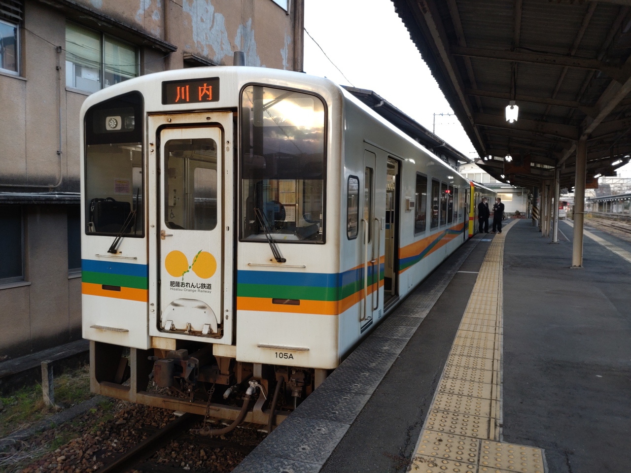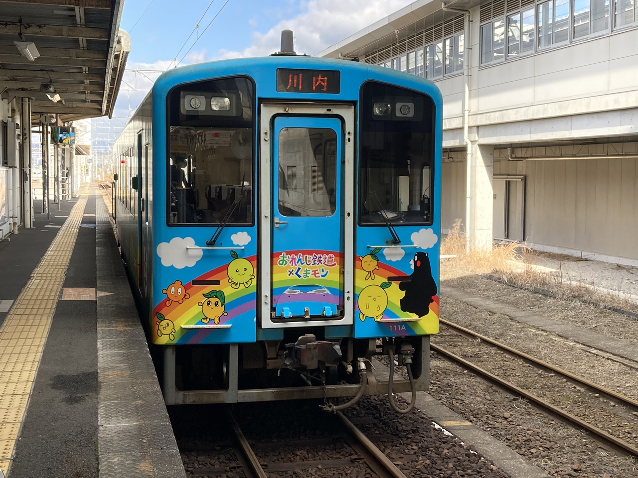 以前は快速列車も走っていましたが、現在は全ての旅客列車が普通列車のみの1両もしくは2両のワンマン運行。八代、川内でそれぞれ鹿児島本線の列車と接続するダイヤで、JRの車内放送でもその情報が案内されます。新幹線なら32分(新八代~川内間)で駆け抜ける八代~川内間を2時間半~3時間を近くかけて運行する列車に加えて、ほぼ中間地点の出水を境とする区間列車なども設定されており、概ね1時間に1本の運行。JR時代は特急列車が主体で、普通列車の接続が悪かったダイヤを改善したことから利用しやすくなりましたが、もともと利用者の少ない区間もあり、比較的空いている区間もあります。また、利便を考慮し、一部の列車は、JR九州の水俣~新水俣間、川内~隈之城間に乗り入れます。