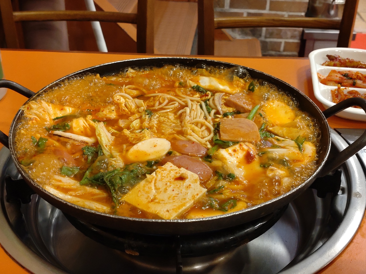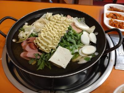 市庁駅(9番出口)からすぐのところにあるコングクスのお店。ネンコングクスとは、冷やし豆乳スープ麺で、歴代大統領御用達とか。しかし、最高気温が零下も普通のソウルでは、夏のメニューをこの時期に提供するはずもなく(11月下旬~2月末まではお休み)、人気メニューは「ソッコチゲ」。直訳すると混ぜ鍋で、中には、イカ、アサリ、ソーセージ、スパム、白菜、青菜、トッポキ、インスタント麺とうどんよりも少し細い麺が入る。ブデチゲみたいなものといえばわかりやすい。日本人には少し辛さが強いが、コクがあり、箸が進む。激寒(この日のソウルの最高気温は-2度)なのに、汗をカキカキ。日本人には少し辛目だが、ご飯を入れると少しマイルドに。価格は10000万ウォンはコスパも良い。ちなみに、キムチ焼飯(13000ウォン)も、目の前で作ってくれて美味しそうだった。