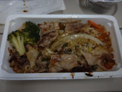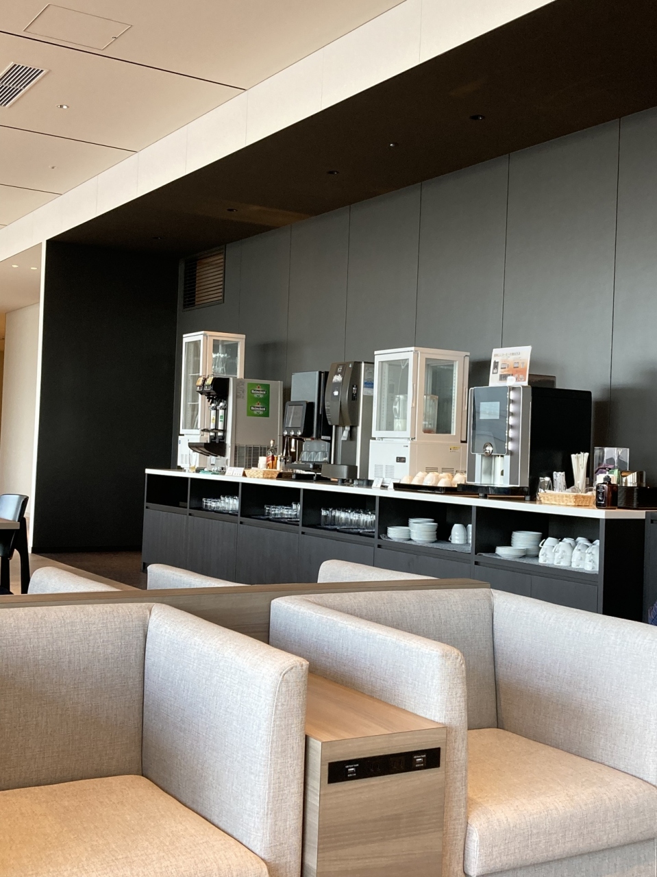食事のメニューは、チキンカレー、唐揚げとポテト、台湾風焼きそばとサラダで、種類はJALのサクララウンジの方が多い気がする。このほかいなり寿司やおにぎり、ロールパンなどがある。ちなみに唐揚げはジューシーで美味。無くなりかけるとすぐに補給してくれるのはさすが。デザートもプチシューだけで、フルーツはなし。たまたまだと思うがビールはアサヒしかなく、ワインの種類も一つだけ。日本酒と焼酎はあった。スパークリングワインがあったのは嬉しい。
