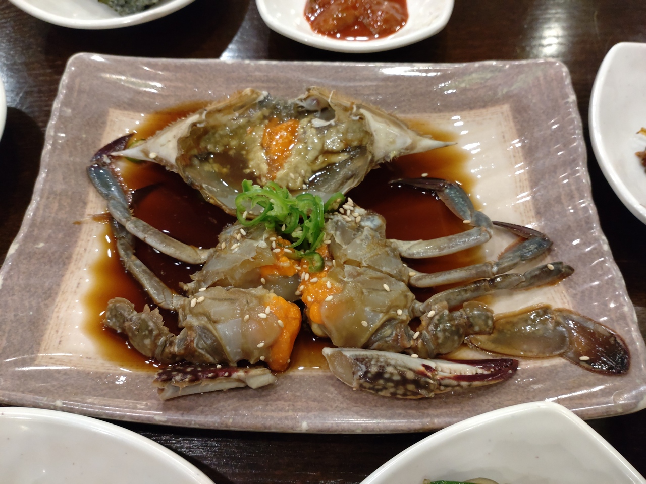 美しいオレンジ色のかに味噌は濃厚で柔らかく旨味とタレがよく絡まっている。甲羅にもぎっしり味噌があり、甲羅の中にご飯を入れて食べると本当にごはんが止まらない。ぎっしりと詰まった足の身の部分は、チューチュー吸いながら食べるこれが濃厚な味でまた美味。今回は「上定食」ではなく一番安い定食にしましたが、それでも十分満足できます。定食には、たくさんのおかずがついてきて食べ放題。これもまた美味。2019年の訪問以来でしてが、味も変わらず嬉しい。また、ソウルに行ったら行きたいお店の一つ。- 旅行時期