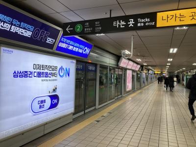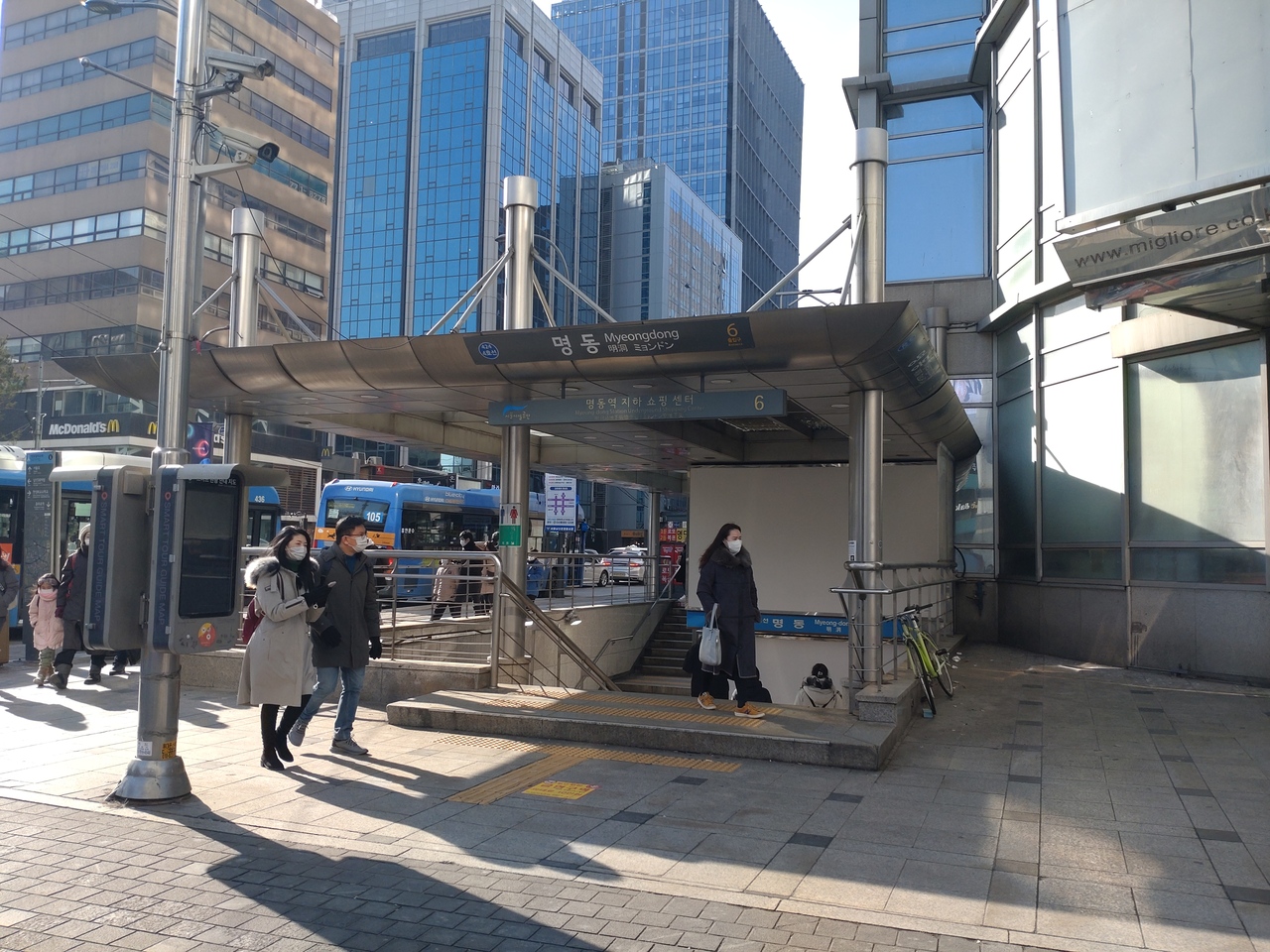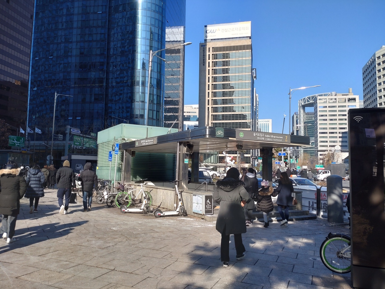 改札口は乙支路地下歩道と一体化されており、ロッテ百貨店本店と直結、ロッテホテルやソウル最大の繁華街、明洞の最寄駅でもあることから乗降客数も多く、1日あたり10万人を超えています。