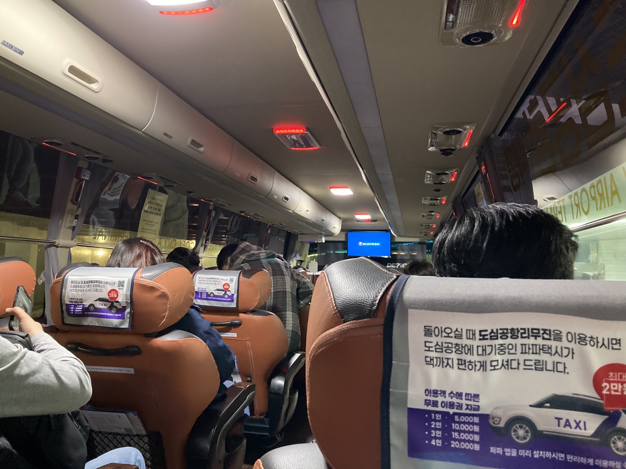 COEXから乗車の場合、2階のリムジンバス乗り場より、仁川空港から乗車の場合、第1ターミナルは1階7A乗り場、第2ターミナルは交通センター地下1階21番乗り場からの乗車。COEXから仁川空港までノンストップなので、途中からお客さんが乗らないので快適。所要時間もほぼ時刻表通りでした。