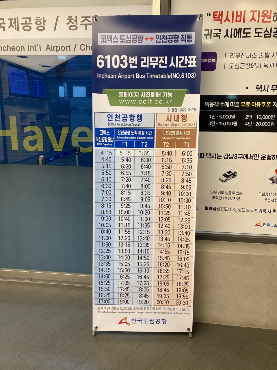 現在、COEXの都心空港ターミナルでの事前搭乗手続きが停止中のため、事前手続きができないのは残念ですが、空港まで快適に移動できる点はかなり良い。- 旅行時期