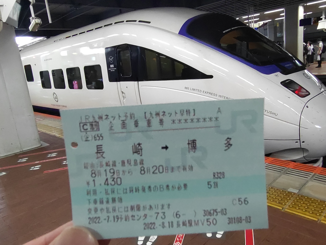 博多から鹿児島本線、長崎本線を経由して長崎までの153.9kmを、1時間50分~2時間10分で結ぶJR九州の特急。1日22往復運転され、毎時1本または2本運行。このほか門司港~佐賀、博多~佐賀、肥前鹿島→博多などの区間特急が数本ある。さらに多客期には臨時列車も数本設定されています。