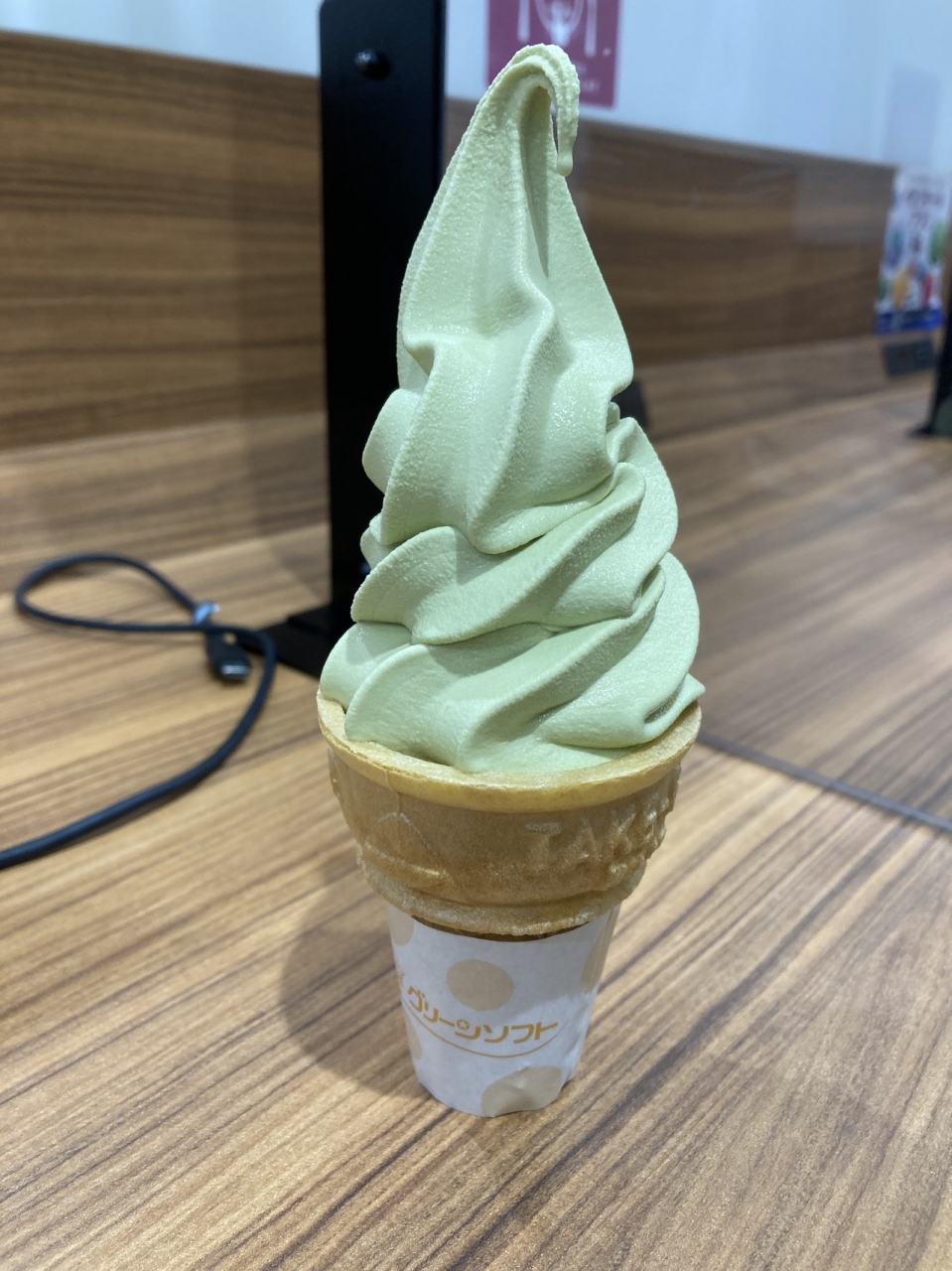 「てんかけラーメン」は390円、大盛り440円と激安。ストレート細麺、器いっぱいの天かすに、ワカメ、大きめに削られた紅生姜が良いアクセント。スープは、和風出汁でうどんの汁のようにあっさりしていて、ついつい飲み干してしまいます。「グリーンソフト」は、確かにこれまで食べたことのない抹茶ソフト。一口食べた瞬間に抹茶の濃さとほのかな苦味、そして程よい甘さを感じられます。和歌山県内のコンビニでは普通に買えるようだが、作りたてのグリーンソフトは、濃さと香りがアップしていて美味。- 旅行時期