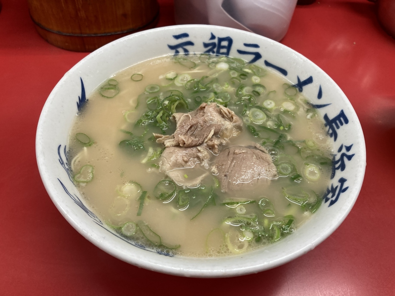 食券を出すと、麺の硬さを聞かれるのも同じ。スープは長浜ラーメンで味わったあの味。肉はしっとり濃い目。たっぷりのネギが美味。紅生姜で少し味変を楽しむのも良い。こちらに移転したのは大正解。飲んだあとにタクシーで長浜まで行かなくても、長浜ラーメンか食べられるのは嬉しい。- 旅行時期