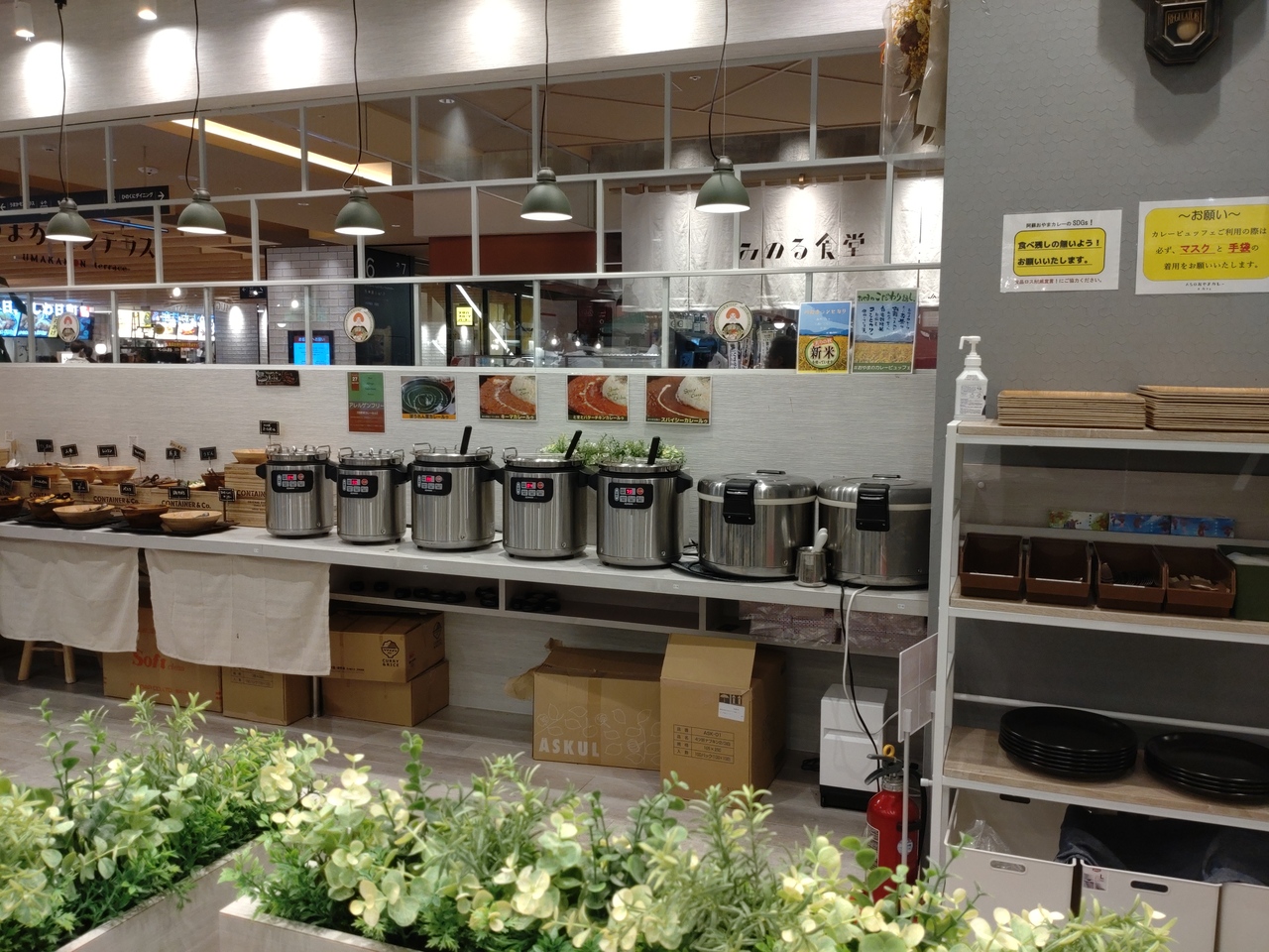 JR熊本駅直結のアミュプラザくまもと7階、ひのくにダイニングにえるカレー店。阿蘇神社参道にある阿蘇のあか牛牛丼や牛カツ重で定評のある古民家レストラン「はなびし」が手掛けるカレー店で、阿蘇産の食材を使ったカレーが楽しめます。