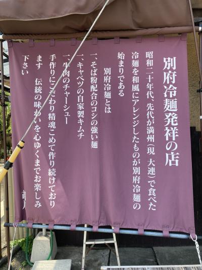 昭和45年(1970年)創業の別府冷麺発祥のお店。別府観光港から徒歩10分くらい、日豊本線の踏切を渡ったところにあるお店で、訪問した日(祝日)は、開店15分くらい前には数人並んでおり、開店10分前の10時50分頃開店、11時には満員となり、11時半にはかなりの行列でした。