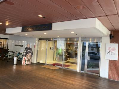 JR高知駅から徒歩10分くらい、高知県随一の繁華街、追手筋にあるビジネスホテル。高知名物の日曜市はホテルの目の前で行われるなど好立地で、高知城やはりまや橋、ひろめ広場も徒歩圏内。