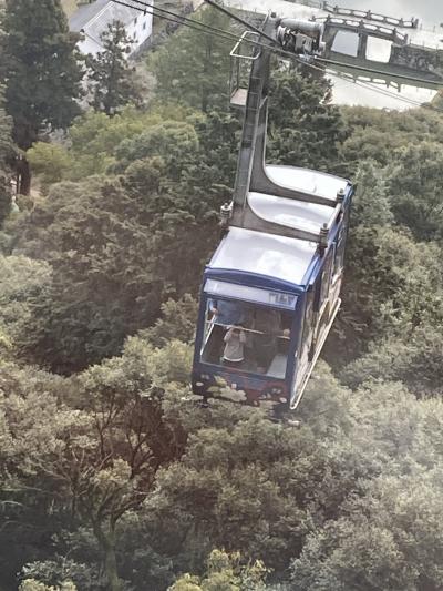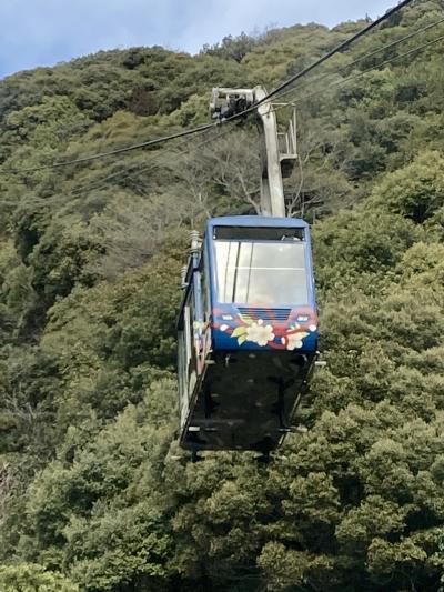 錦帯橋を渡った先の吉香公園前の山麓駅と岩国城近く、標高200mの山頂駅までの全長412mを結ぶロープウェー。乗車時間は3分と短いものの、錦帯橋をはじめ、岩国市街や岩国錦帯橋空港(岩国基地)、瀬戸内海の島々までが眼下に広がる景色が楽しめます。ゴンドラの中では、音声ガイドで簡単な岩国のれきしを紹介してくれます。また、山頂駅には時を告げるときだけ中の人形か動き、岩国にゆかりのある音楽が流れるからくり時計の塔があり、なかなか楽しい。毎時0,15、30、45分の発車で、待つこともあまりありません。料金は往復560円ですが、錦帯橋、ロープウェー、岩国城の3つがセットになったセット割引は1140円なので、こちらがお得です。ちなみに運営は、地元の第三セクターのローカル線、錦川鉄道が行っています。
