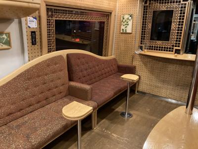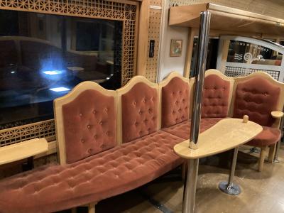京都府北部を走る京都丹後鉄道の特急用車両。1996年に導入した特急「タンゴディスカバリー」向けに製造されたKTR8000形気動車を、2015年に、JR九州のクルーズトレイン「ななつ星in九州」や和歌山電鐵の電車をはじめ数々の鉄道車両のデザインを手掛ける水戸岡鋭治さんにリニューアルを依頼。「走る海の京都」というコンセプトを、木に囲まれた和テイストでデザインした車両で、客室天井と壁は白樺、床はナラ、座席は楓を使用。外装は藍色メタリックに金色のシンボルマークとロゴマークを配し、高級感を出しています。