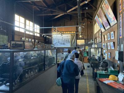 天竜浜名湖鉄道が本社を置く、天竜二俣駅で行われているツアーで見学可能な鉄道遺産の一つと展示室。天竜二俣駅は、1940年、旧国鉄二俣線開業時にできた駅で、第三セクター化された今でも、蒸気機関車の運行時代から使われ、扇形庫や転車台、さらには登録有形文化財の事務室、浴場、近代化文化遺産である高架貯水塔などが現在でも使われており(一部は使われていない)、ツアーで見学できます。ツアーでは、扇形庫に収められている気動車を実際に動かし転車台で一周させて、もう一度扇形庫に戻すという作業を実演してもらえるなど、普段なかなか見ることのできない作業を目の前で見学することができます。鉄道歴史館は扇形庫の隣りにあり、小さな展示室ではあるものの、実際に二俣線で使われていた資材や機材、ヘッドマークなどが展示されており、見応えがあります。ただ、見学時間が限られているのが残念。