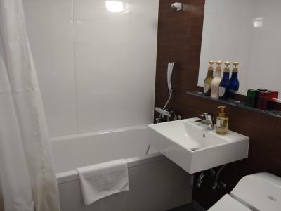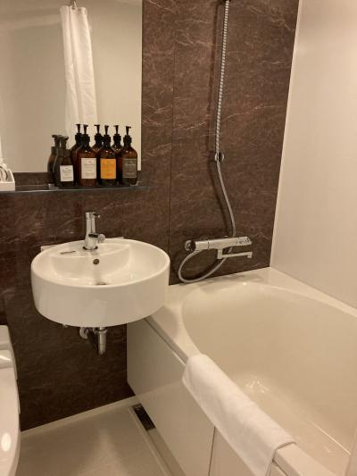 2018年にオープンしたホテルだけあって部屋の設備面は最新式で不満は特になし。私が宿泊したエグゼクティブダブルルームは、12㎡と広くないものの、白とオレンジでまとめられており、カジュアルさと明るさがあって落ち着く。狭さは感じませんでした。デスクパソコン作業ができるの大きさで問題なし。電源の数もしっかりしていてまとまっているので便利。枕元にもコンセントがあるのはありがたい。ベッドのマットレスはシモンズ製で安定。水回りもバスタブがゆったりしていてよかったです。