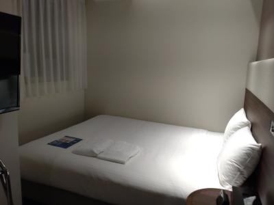 何度かリニューアルはされていて、部屋も個別空調になるなどレベルアップされているものの、1982年開業のホテルの設備の古さは致し方なく、シングルルームは12㎡で狭く感じる。まだ明るいうちにチェックインをして部屋に入ったところ、アツメノカーテンで部屋は暗く、カーテンを開けたら室外機に多数の鳥の糞がついていて、それだけで気分が悪くなった。摺りガラスにするなど、もう少し配慮ができないものか。これでかなり残念。