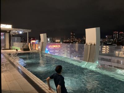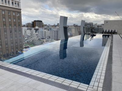 このホテルの目玉は10階にある那覇市内を一望できるバーと、沖縄初となるシースルーのプール。道路に面した壁面が少しせせり出たプールは、少しリゾート感はあるが、目の前の大型遊戯施設とホテルルートインがあるので、眺望が良いわけではなく、またホテルルートインの大浴場と目が合うことがあった。冬でも入れるのは良いが、やはり寒いときもあるのでジャグジーがありがたかった。気がかりなのは、このプールを2022年10月から、有料化されること。入場料1000円とのことだが、1000円の価値があるかというと、やや疑問。