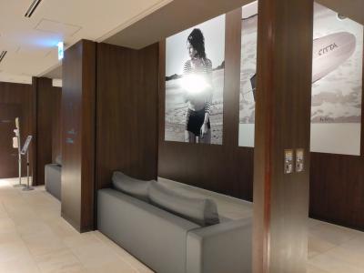 ホテルのエントランスは広くなく、無駄なものを排除している感じ。こういうところから3.5星のホテルなのだろうと思いました。吹き抜けのエレベーターホールにはソファが設置され、壁にはサーファーなどの絵が飾ってあったりとお洒落な雰囲気。