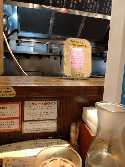 ワインを飲みながらつまみを食べて、〆にカレーもできるお店のようで、西荻価格で少し高めながらも、是非また行きたいお店の一つ。- 旅行時期