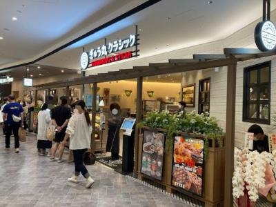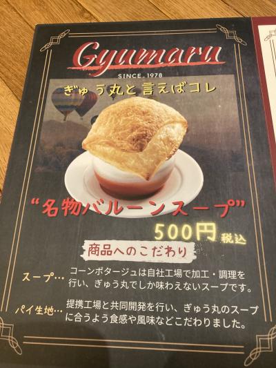 三井ショッピングパークららぽーと福岡3階のグランダイニングに面した西側にあるハンバーグレストラン。ぎゅう丸は、佐賀県嬉野市の国道34号線沿いに本店のあるハンバーグレストランで、1981年に創業した老舗。現在は佐賀県、長崎県、福岡県、大分県とベトナムでハンバーグレストランを展開しており、ハンバーグとバルーンスープ(パイ包みスープ)、スイートポテトが有名。ただ、スイートポテトは原材料のさつま芋の確保が難しいとのことで、今回、店頭では見かけませんでした。喫茶店からスタートしたお店だそうで、洋食店で学んだ技術をベースにお客さんの声を聞きながら今のハンバーグになっていったという。こちらはららぽーと初出店で、嬉野の本店の雰囲気を感じられるようにと「ぎゅう丸クラッシック」と名付けたとのこと。