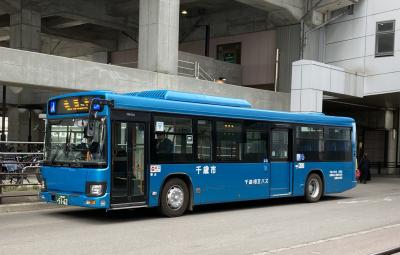 路線バスは、西武バスから移籍した車両が主力で、白のベースカラーに赤とゴールドの線の入ったバスがほとんどですが、2018年に防衛省の助成を受け千歳市から貸与された、災害発生などの緊急時に避難者や物資の輸送にあたる大型バスの運行を開始。「支笏湖ブルー」と呼ぶこれまでとは異なるカラーのバスは、千歳バスとしては35年ぶりの新車で、長都駅から千歳駅、千歳市役所を経由して新千歳空港に乗り入れる勇舞空港線で運行されています。