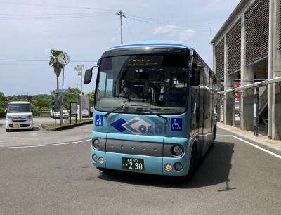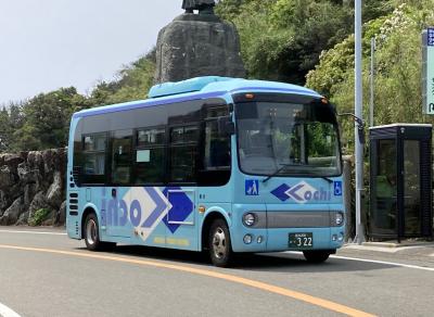 今回は、土佐くろしお鉄道奈半利駅から室戸岬まで乗車。奈半利駅のバスターミナルにやってきたバスは、なんと日野「ポンチョ」。所要時間1時間以上の路線で、まさかコミュニティバスに使われることの多い車両なんて、と驚くとともに、大きなスーツケースを持っていたので、置き場所に困りました。ただ、乗客数は、座席がほぼ埋まる程度。乗降客の半分くらいは室戸岬をめざす観光客、残りは短・中距離の地元の方なので、サイズとしてはちょうどよいのかもしれません。基本的には国道55号線を走りますが、民家が多いところになると、細い旧道を走るので、小型のこのバスの実力が発揮されました。ただし、ノンステップバスなので、せっかく太平洋の海岸線を走るところもあるのに、景色を見るのは後ろの座席に座らないと辛いのは残念でした。