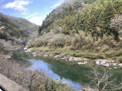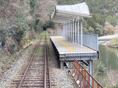 JR岩国駅の奥にある錦川清流線専用の0番ホームを出発、岩徳線の西岩国、川西を通り、1.9km先の森ヶ原信号場で岩徳線と分かれ、錦川清流線になります。川沿いを走り、山陽から中国山地に向かいます。列車は、山陽新幹線の新岩国駅と接続する清流新岩国駅を過ぎると森の中を駆け抜けて行き、清流・錦川に沿って走り、山の斜面と川のギリギリに沿って進みます。途中、ツアー列車しか訪れることのできない秘境駅、清流みはらし駅を通過、錦川にかかる沈下橋が見えたりしていると、岩国駅から1時間7分で、錦町駅に到着します。