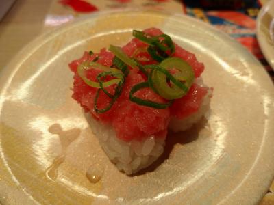 回転寿司店としては珍しくお寿司を1貫ずつ頼めるのがありがたく、いろいろな種類のお寿司を楽しめるのは嬉しい。マクロは1貫70円、2貫130円と、他店とそう変わらないが、冷凍ながらも質は悪くないものだった。ただ、お寿司をレーン取ると、いちいちタブレットの確認のボタンを押なくてはならないのは面倒だった。- 旅行時期