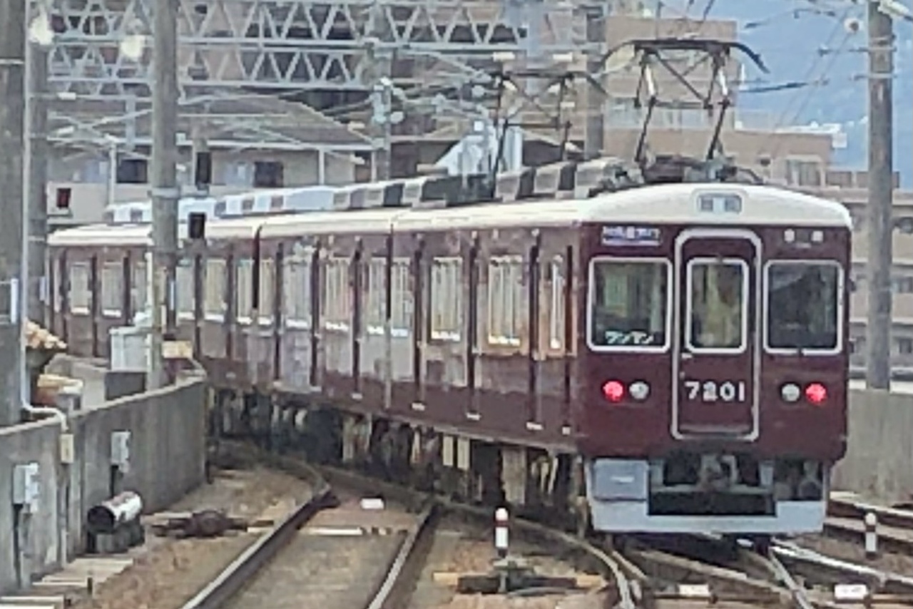 現在所有する車両は、全て阪急電鉄からの譲渡車両で、一番古い車両は1960年代に製造された元阪急2000系を車種とする1700系で、1990年から92年にかけて導入。既に車歴は60年を超えていますが、阪急電車の雰囲気と同じせいか程よい古さを感じる程度。1970年代製造され、2014年に譲渡された、最近の阪急顔の元阪急5100系を種車とする5100系が主力。また、最新の車両は2018年、19年、21年に営業運転を開始した7200系。元阪急の6000系と7000系を種車とする車両で、マルーンとアイボリーのカラーの間に金色のラインが入った。能勢電初のVVVFインバーター車であり、乗り心地も良い。この他、阪急電鉄から2014年に譲渡された6000系(6002F編成)を有しており、「日生エクスプレス」限定運用に就いています。能勢電鉄に入るのは、平日の同運用のみで、通常は宝塚線で運用。車両使用料の相殺のために譲渡されたもので、ドア横の社章が能勢電鉄のものに貼り換えられたほかは阪急時代と変わりません。