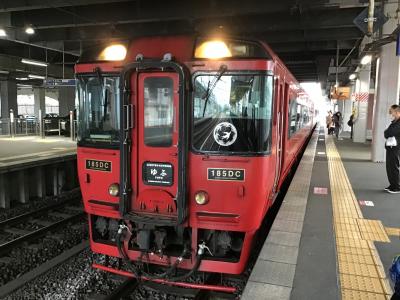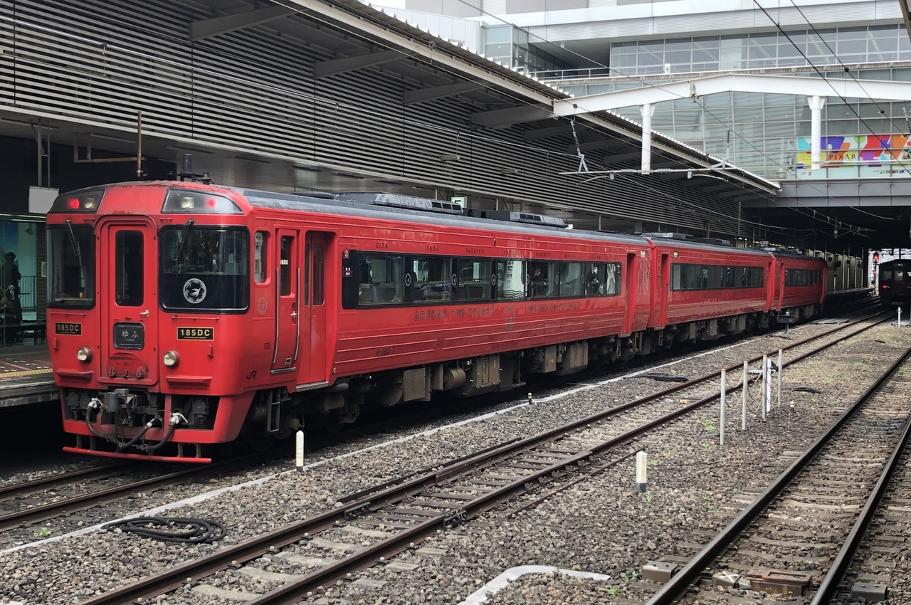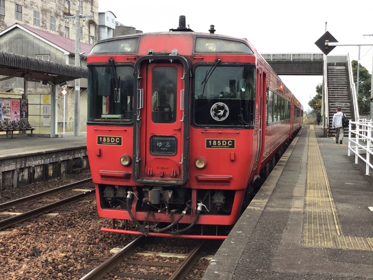 博多から鹿児島本線、久大本線(ゆふ高原線)、日豊本線経由で大分・別府を結ぶJR九州の特急列車。1961年10月に運行を開始した準急由布(1968年急行に格上げ)を、1992年7月に特急に格上げして運行開始しました。非電化の久大本線を通るため、JR四国から購入したキハ185系気動車が用いられており、博多~別府間に一日2往復、博多~大分間一日1往復の運転で、また、ゆふいんの森に使用されるキハ71系・キハ72系に予備車がないことから、車両検査で運休する際は、同じダイヤで特急ゆふが運転されます。