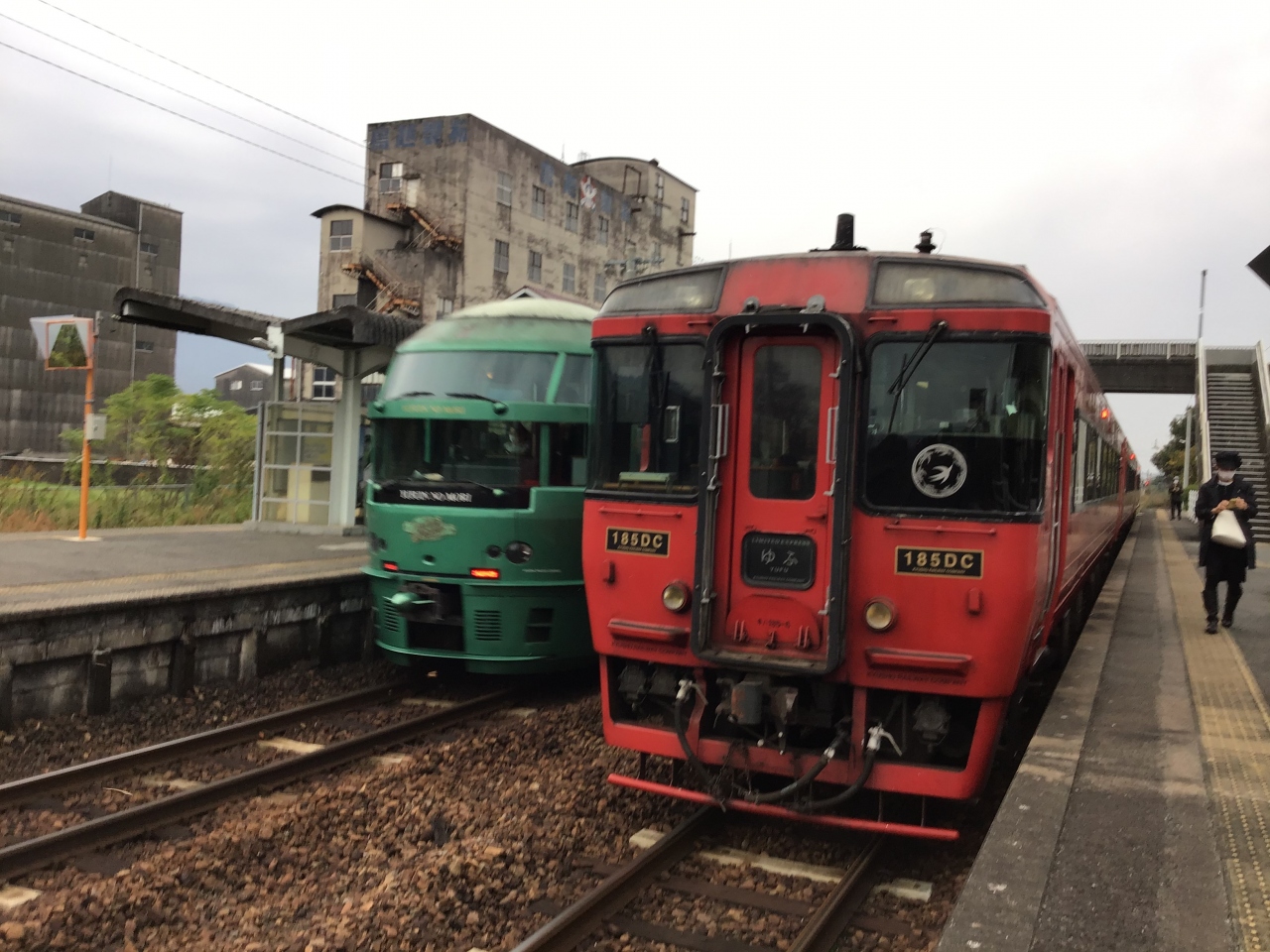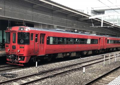 2022年3月のダイヤ改正までは指定席2両、自由席1両の3両編成が基本で5両編成まで増結されることがありましたが、現在は指定席・自由席1両ずつの2両となり、鳥栖~別府間はワンマン運転となりました。車両は譲渡車両ではあるものの、大幅にリニューアルされており、車体は全面、JR九州のコーポレートカラーである赤となり、正面にはフォグランプが取り付けられました。車内も化粧板が張り替えられ、窓枠やテーブル、肘掛表面には木製パネルが使用され、床はフローリング化されるなど、随所に木質系の内装材が多用されており、他のJR九州の特急車両ともレベル感が合わせられています。トイレも和式から真空吸引式の洋式になり、サーピスレペルも向上しています。