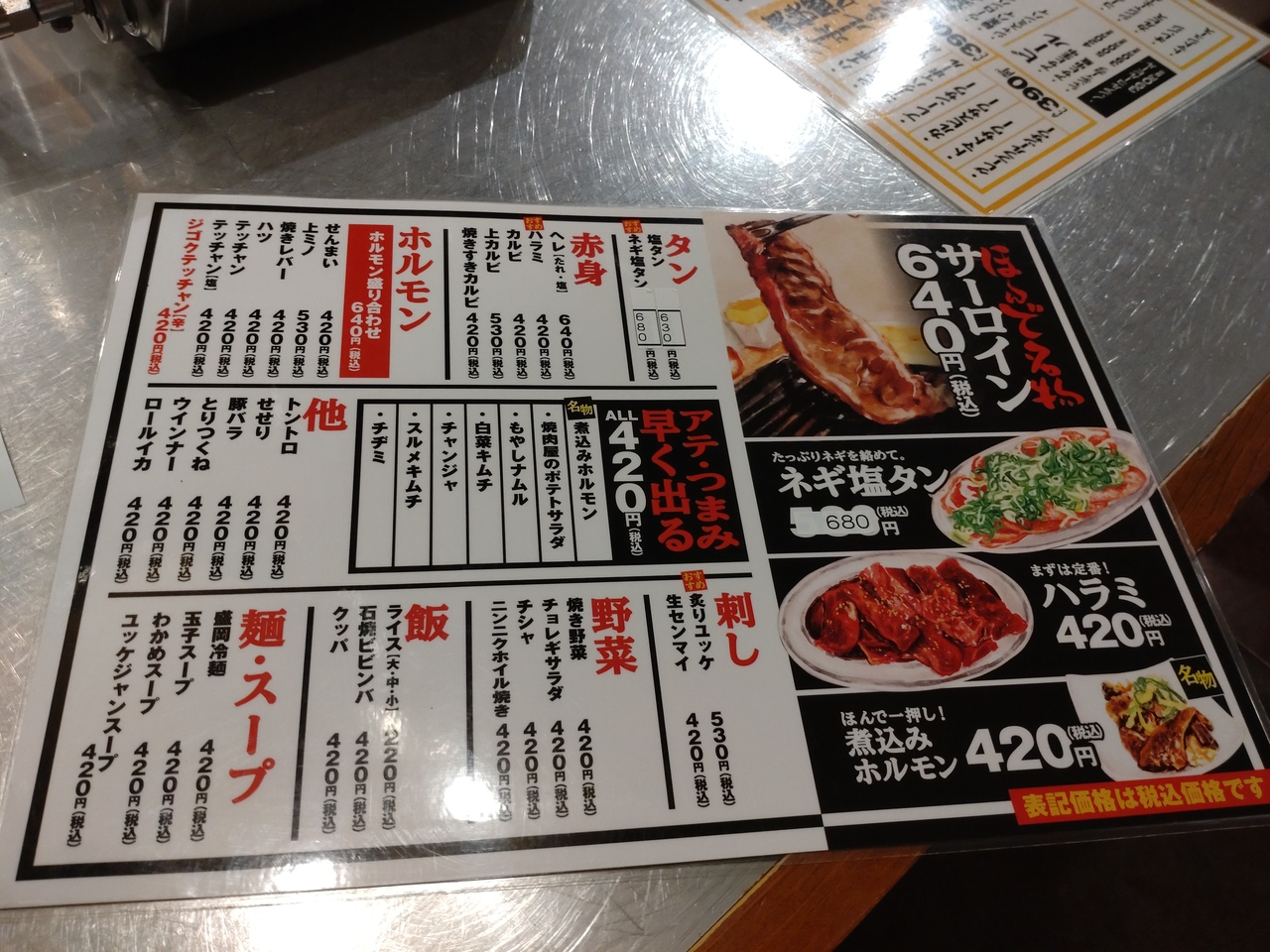メインのお肉は420円か中心。少しコスパか悪い気するメニューもあるが、お肉のLEVELは合格点。ラムのセセリ焼可売切れだったのは残念てしたか、ラムも美味でした。お酒が進むとついついツイカ注文してしまうのが問題かと。