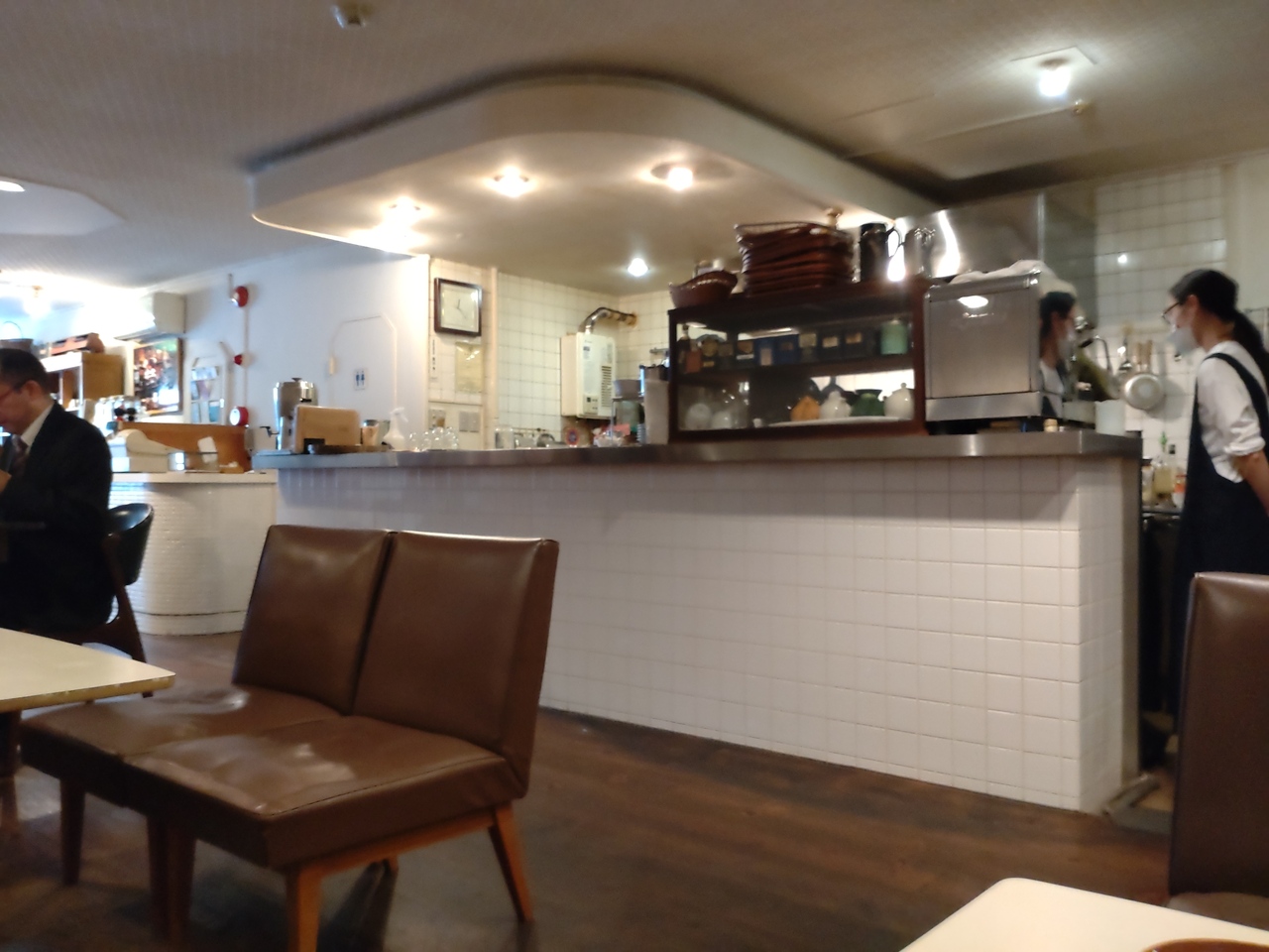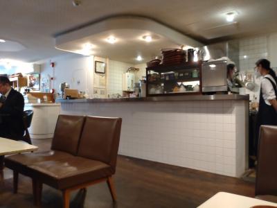 狸小路7丁目の少し先、西8丁目のグランベルホテル前にあるカフェ。1999年オープンの老舗のお洒落カフェで、少し古めの建物の1階にあり、看板にも字が小さく、年季が入っています。白い扉の入口からお洒落。白のタイルと壁、木製の床、照明など、こだわりが感じられます。