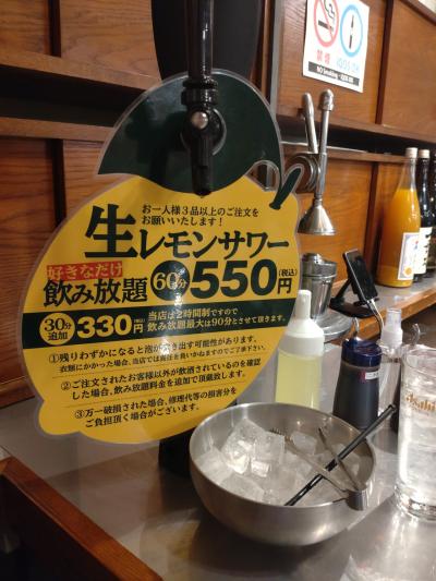 狸小路7丁目にある焼肉店。テーブル席がメインですが、カウンター席もおり、一人での利用も可能。各席には、レモンサワーか樽ハイ倶楽部の飲み放題が60分550円という格安て楽しめる。各席にサーバーかあり、飲み放題の場合、時間内は自分で注いでいく。ケッコウ濃いめでちゃんと氷で割らないと大変なことになるで注意。