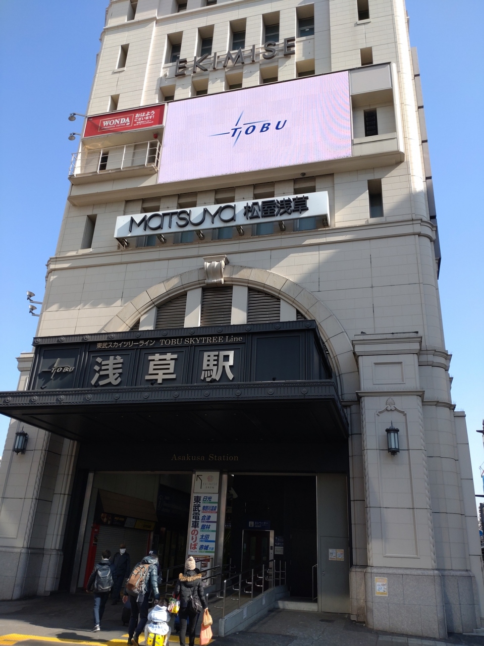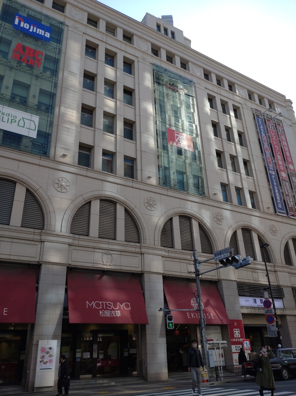 東武スカイツリーライン浅草駅ビル「浅草EKIMISE」の地下1階~3階(2階を除く)テナントとして入る百貨店。もとは1931年11月、東武鉄道浅草駅(当時は浅草雷門駅)開業に際して、駅ビルのテナントとして開店した老舗の百貨店。高島屋大阪店(南海なんば駅)や近鉄宇治山田駅の建物を設計した久野節氏による設計アールデコ調の、駅と店舗が一体化した、地上7階、地下1階、屋上の駅ビル全ての浅草を代表する百貨店でした。しかし、消費不況から2010年、4階より上での売場の営業を終了し、売場面積が以前の3分の1程度の規模となり、屋上に合った日本最古の屋上遊園地も閉鎖。ビルのオーナーである東武鉄道か経営する駅ビルのテナント扱いとして2012年に再オープンし、食品と婦人服中心の構成となりました。駅の構造上、細長い店内はは、特に地下1階の天上が低く、古い建物であることがよくわかります。地下の食料品街はお弁当などが充実しているほか、コクミンドラッグが入るなど、銀座の本店にはない庶民的な百貨店でもあります。