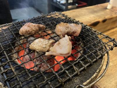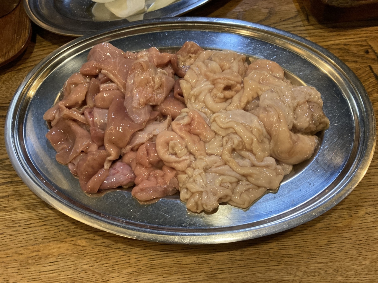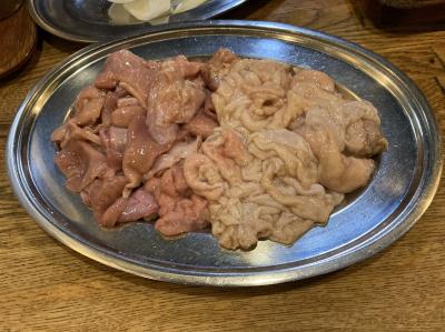 七輪の炭火で、それぞれがお肉を焼くスタイルは他と同じ。塩ホルモンと上ホルモンの入ったミックスホルモン、牛カルビ、生ラムをオーダー。本当は、サガリとレバーも食べたかったのですが、既に品切れ。仕方がなく、ミックスホルモンを二人前にしました。ミックスホルモンは、さすが超新鮮。お酒を飲まなければ、白飯を何杯でもいけそうな感じ。秘伝のタレは少し濃いめ。捌くときにきちんと処理されているので、全くクセがない。脂っこくないので、七輪から火が出ることもない。適度に脂が落ちる。牛カルビは大きくジューシー、生ラムもジンギスカンで食べるのとは異な理肉の味がわかります。