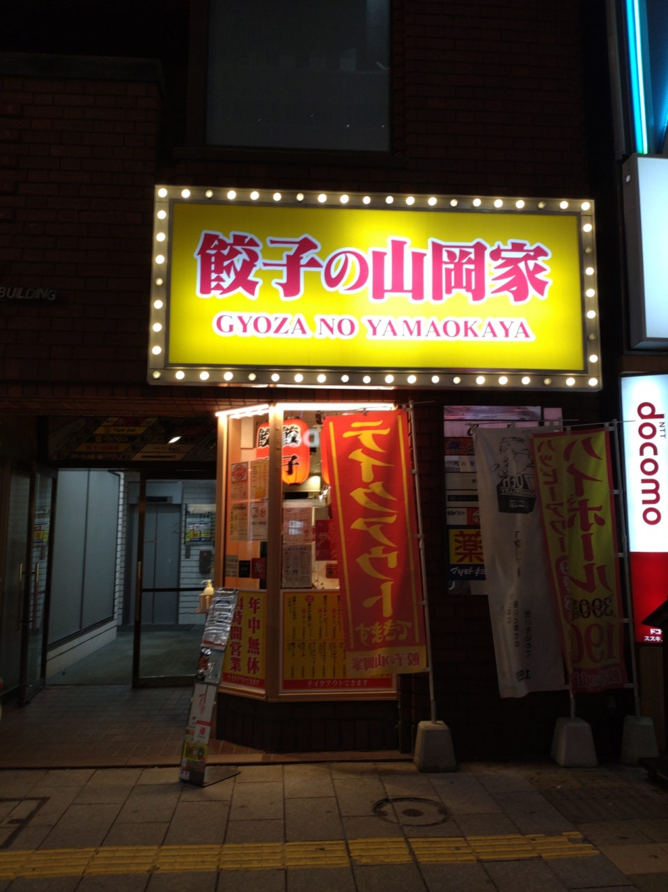すすきのの交差点近くにある餃子のお店。ラーメンの山岡家の新業態で、2021年8月にオープン。山岡家は札幌に本社があるので、札幌市内に試験的なお店を出店することがあり、味噌ラーメン専門店と同じように餃子専門店はまだここだけ。以前は立ち食い蕎麦店だったところに居抜きの形で出店。近くにはライバル?餃子の王将もあります。黄色のお店は結構目立ちますが、店内は蕎麦店時代と変わらずカウンター席のみ。24時間営業。