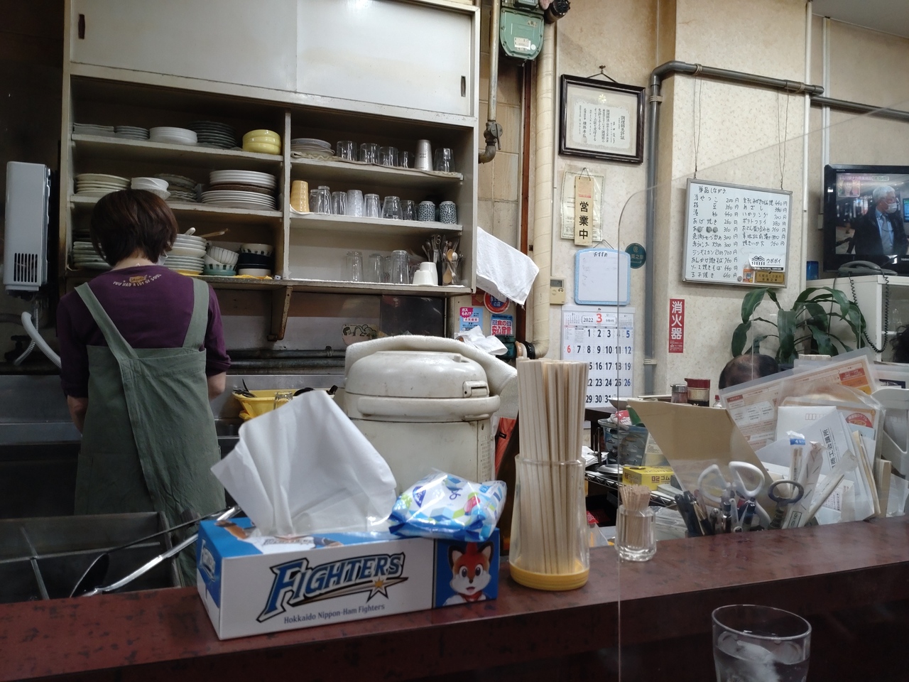 大通の端、中央バス札幌ターミナルの地下の食堂街にあるお店。普段は21時までの営業で、お酒やタンピンのおつまみも出す、居酒屋のようなお店。ランチ時は、丼物や野菜炒めなどの定食が中心ですが、半数以上のお客さんが頼むのがチャーハン。中華料理店のような大きな鍋で作らなず、個別に作っていくので、注文してから少し待つときがあります(チャーハンでなくても待つことも多い)が、普通盛はワンコインの500円(中盛で600円)とは思えないボリュームに圧倒されます。少し強めの塩味、硬めのご飯、たっぷりの油、玉ねぎとお肉、かまぼこはお気持ち程度に入っていて、お米が主役と主張しているかのよう。決してパラパラではないのだけど美味い。懐かしい味のチャーハンという印象。札幌でチャーハンといえばこのお店というのも納得。お味噌汁と大根のサラダが箸休めになります。