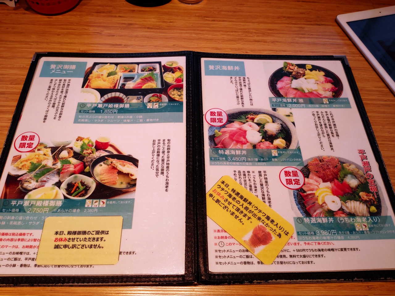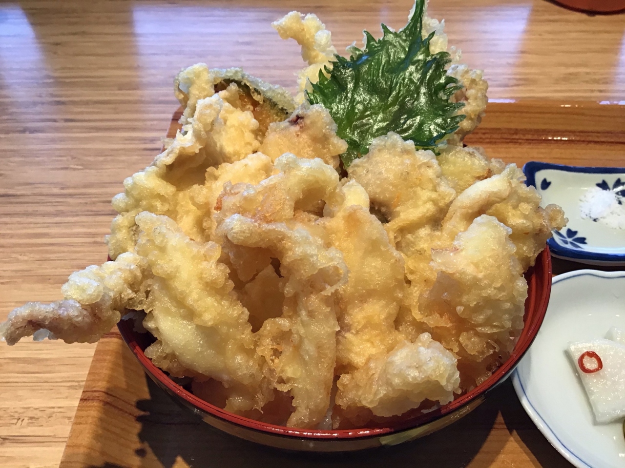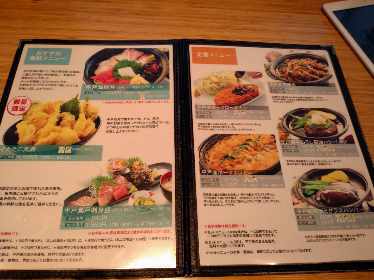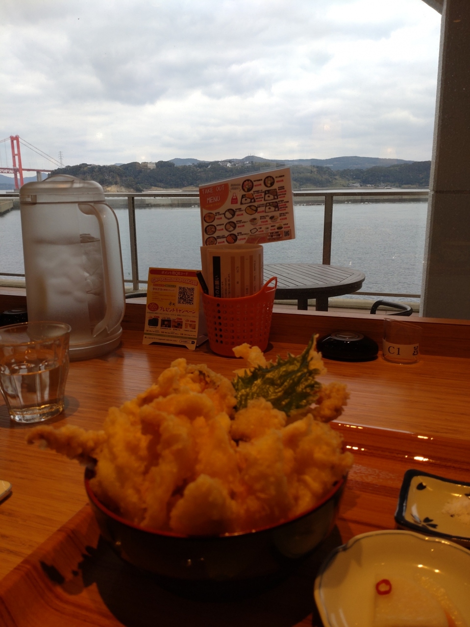 2階のレストランは、展望デッキ付きで、ゆっくり寛げるようにスペースを広く取ったカウンター席からは平戸瀬戸が一望でき、楽しめる。オススメは海鮮丼に次ぐ人気ナンバー2の「イカたこ天丼」。丼から溢れそうなくらいに盛られた、平戸近海で獲れたイカ、たこの天ぷら、さらには地魚、旬の野菜を使用した天丼は、想像を絶するボリュームで、圧倒されます。天ぷらは、揚げたてでアツアツ・サクサクで、歯ごたえも適度にある。天つゆと平戸産の天然塩どちらでも味わえます。途中で、まだ残っている!と悲鳴をあげそうなくらいのレベル。味噌汁と香物付きで1100円のなで、コスパはめちゃくちゃ良いと思う。- 旅行時期