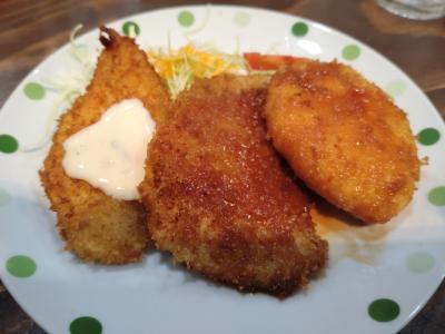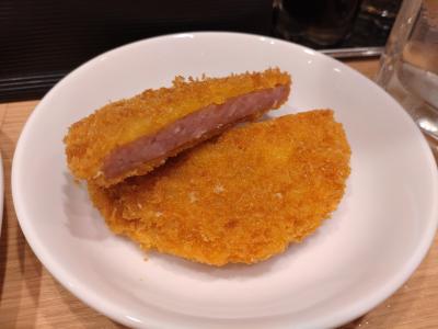 揚げ物は期待値通りの味。クリームコロッケの口溶け感は美味、ベシャメルソースでしっかりと味がついていて美味。ヘレカツは肉の旨さを逃していない。エビフライは、海老を開いて揚げてあるのご特徴。表面が増える分衣も増えるのでボリューム感はありますが、その分、プリプリ感が少し失われてしまっている気も。とはいえ、合格点だと思います。一方でオムライスは、トロフワのオムライスなんだろうけど、少ししっかり目だったりして中途半端。チキンライスの量も少ない。とはいえ、1000円以下でオムライスと3種類のフライが楽しめるのでコスパはかなり良いと思う。- 旅行時期