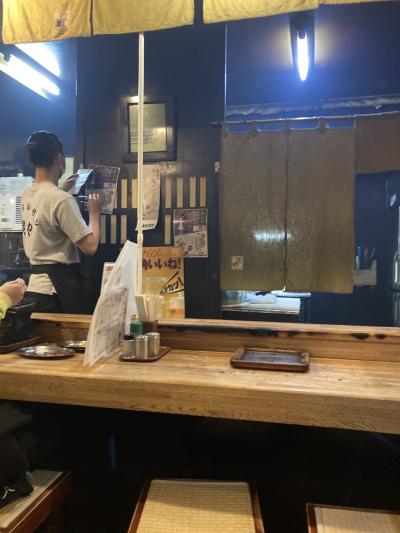 お店の暖簾をくぐると、煙がモクモクしていて、昭和の居酒屋風のカウンター席とテーブル席、座敷席があるのは他の炭屋と同じですが、ここが一番モクモクしているかも。