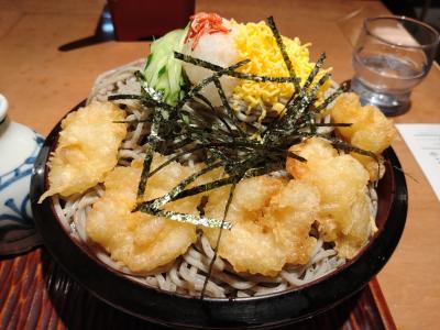 今回は「蝦おろしそば」をオーダー。地元STV「どさんこワイド」の人気ランキングで1位になったことのあるメニューで、お蕎麦の上に海老の天ぷらが5つも乗った贅沢な逸品。海老にはわざと腹に切れ目を入れず敢えて真っ直ぐな海老天になっていないところも特徴。もちろん海老はプリプリで美味。大根おろしがたっぷり乗っているのでさっぱり食べられます。プラス140円で大盛りにしたところかなりのインパストなのですが、しかし少し食べにくい。蕎麦は蕎麦粉6割でつなぎときざみごまを入れて、季節や気温、湿度によってコネの水の量を変えているとのこと。汁は日高昆布と自社で削る4種類の鰹節を使ったもので、そばとの相性は良いです。- 旅行時期