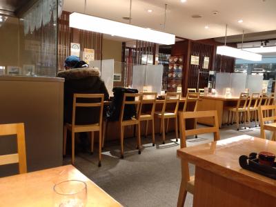 今回は、日曜日の6時半頃、予約なし、一人で入店。席は空いているのだけど店員さんが少ないので、掃除が終わらないようで少し待つ。