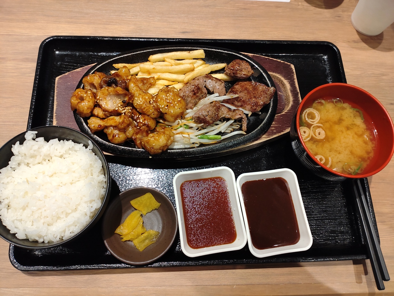 今回は「ホルモンミックス&ミスジステーキ定食」に300円プラスでホルモンミックス増量。待つこと5分くらい、提供されたホルモンは、福岡で食べた味がかなり再現しており、ホルモンはカリッとしていて中はじんわり柔らかい。ミスジは柔らかく適度にサシが入っていて美味。ただ、時間が経つと、冷めてしまうのは致し方がないとはいえ、フードコート店の限界かも。また、何故かフライドポテトが入っている。これは福岡のお店では出されないものです、やや違和感あり。やはりフードコートよりも鉄板で食べるお店が良いですね。- 旅行時期